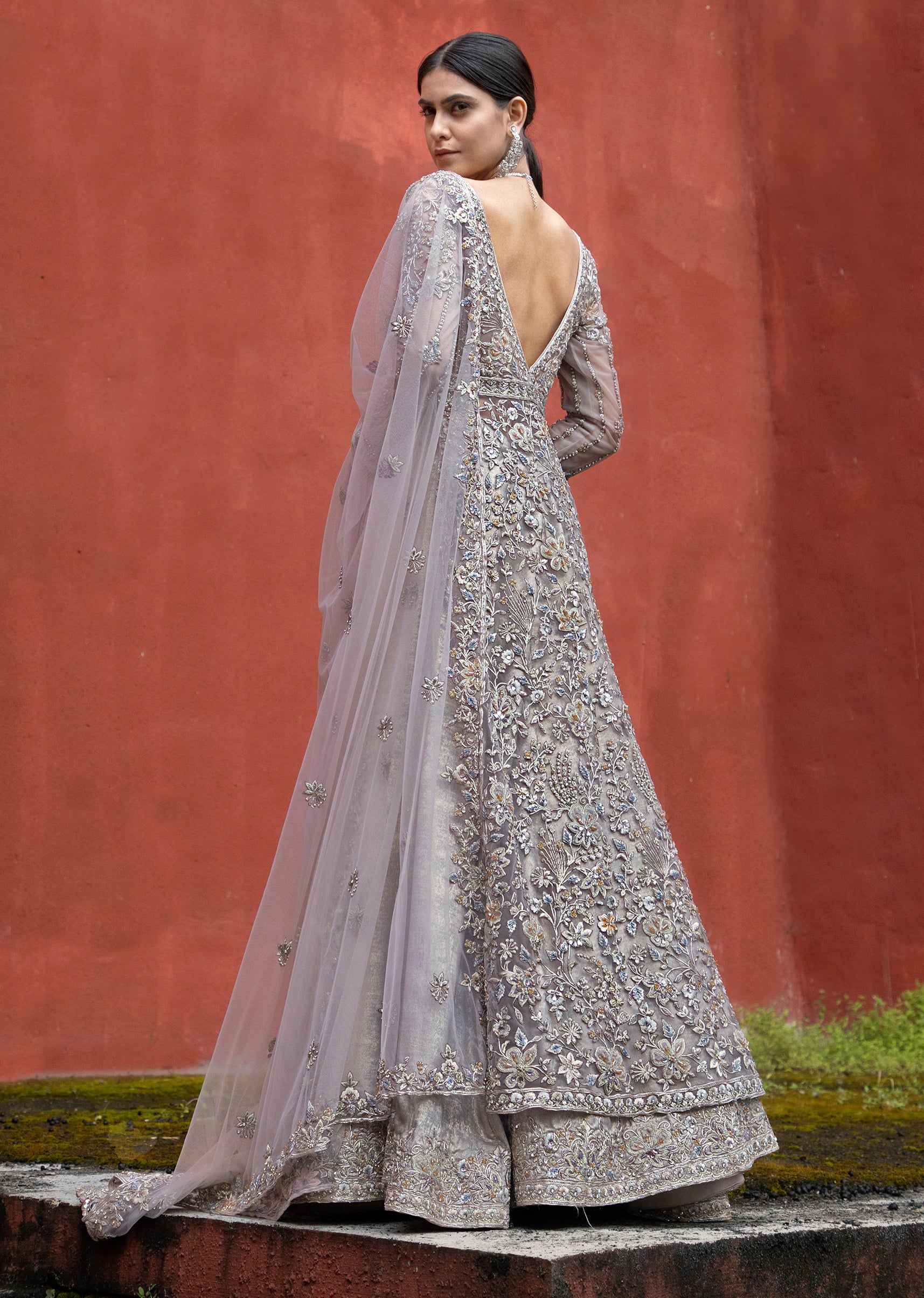 Dazzle in this resplendent gold net lehenga, adorned with intricate patchwork embroidery in zari, creating a mesmerizing tapestry of tradition and opulence. The gold foil skirt, enriched with ornate borders, adds a touch of regal elegance, ensuring you stand out in any celebratory affair.
