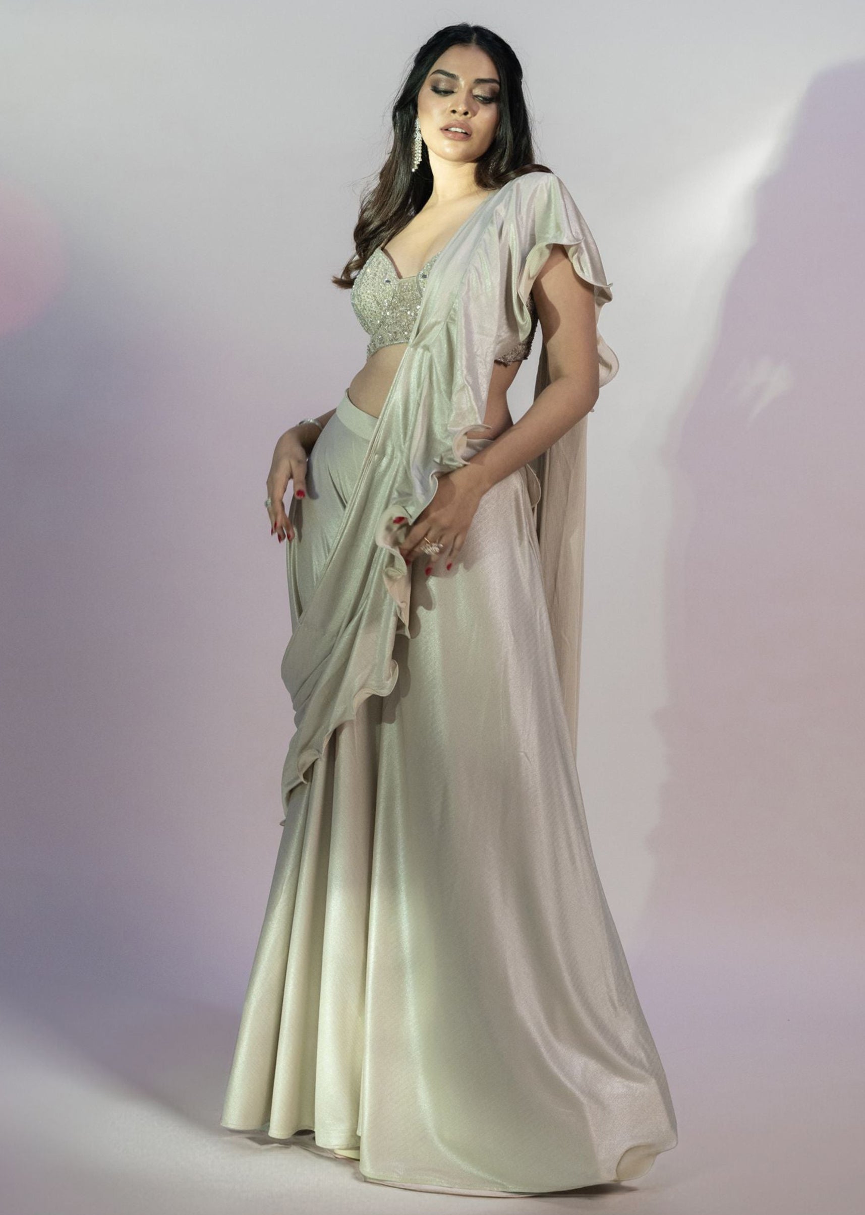 Champagne Gold Shimmer Lycra Saree With Choli In Sef Embroidery
