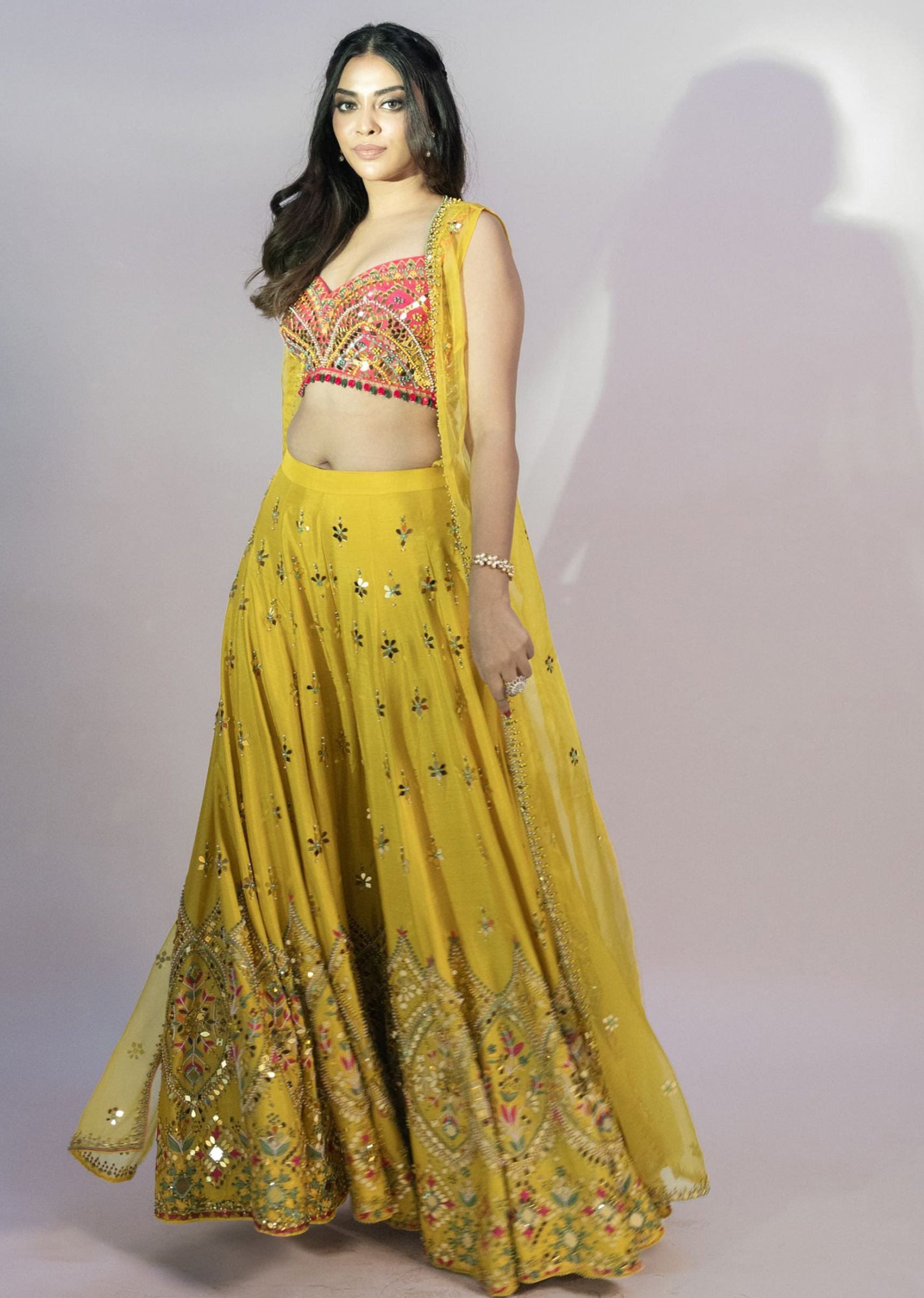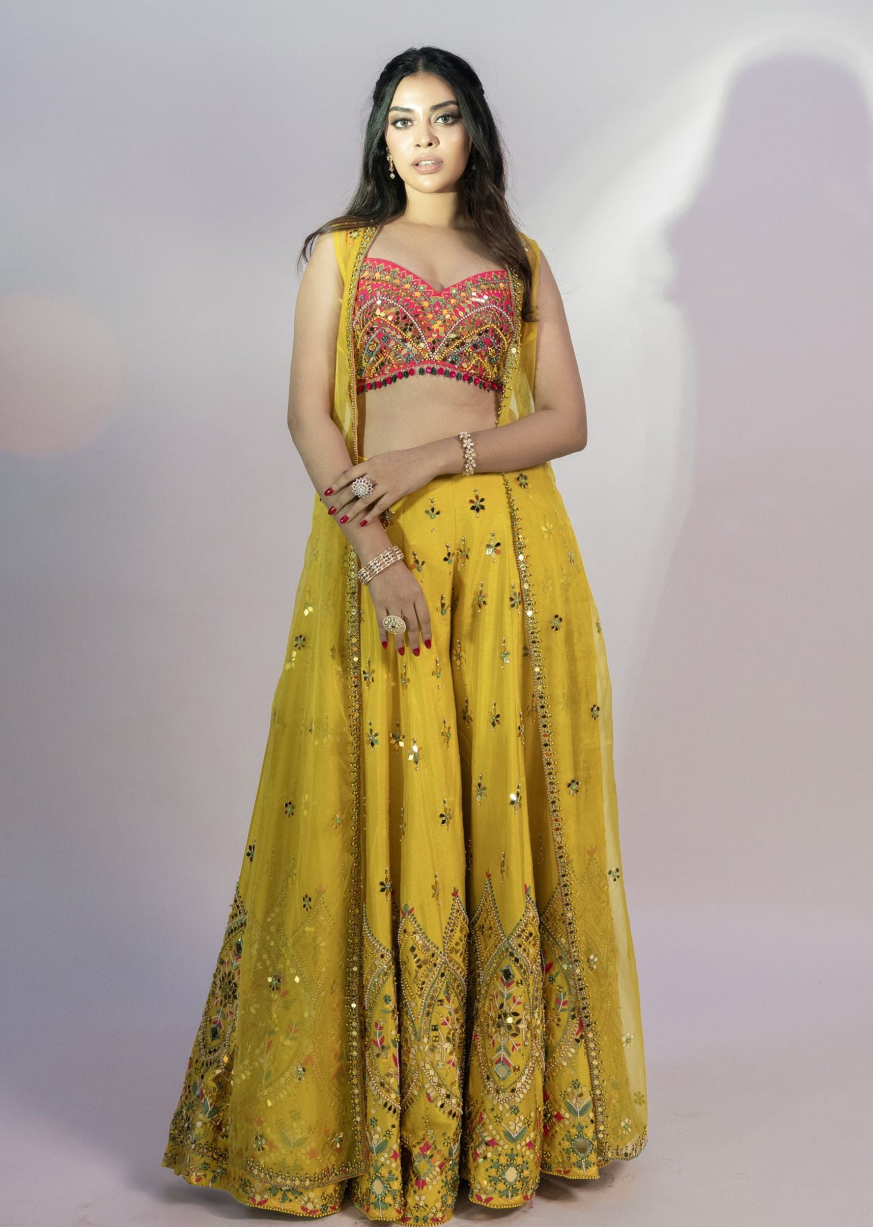 Rani Silk Mirror Pearl And Sequins Embroidered Choli With Yellow Organzha Jacket Plazho Set