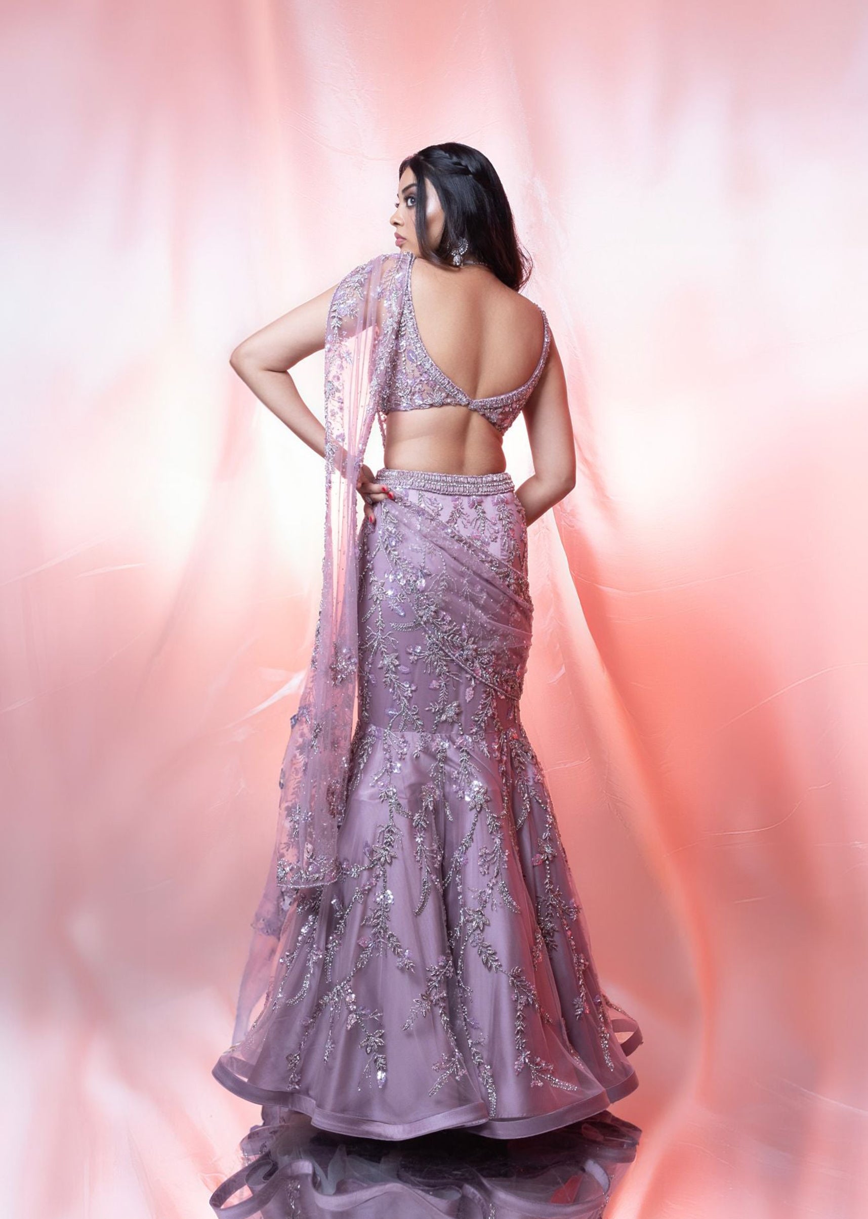 Movie Mermaid Saree In Net With Attached Drape And Choli In Self Embroidery