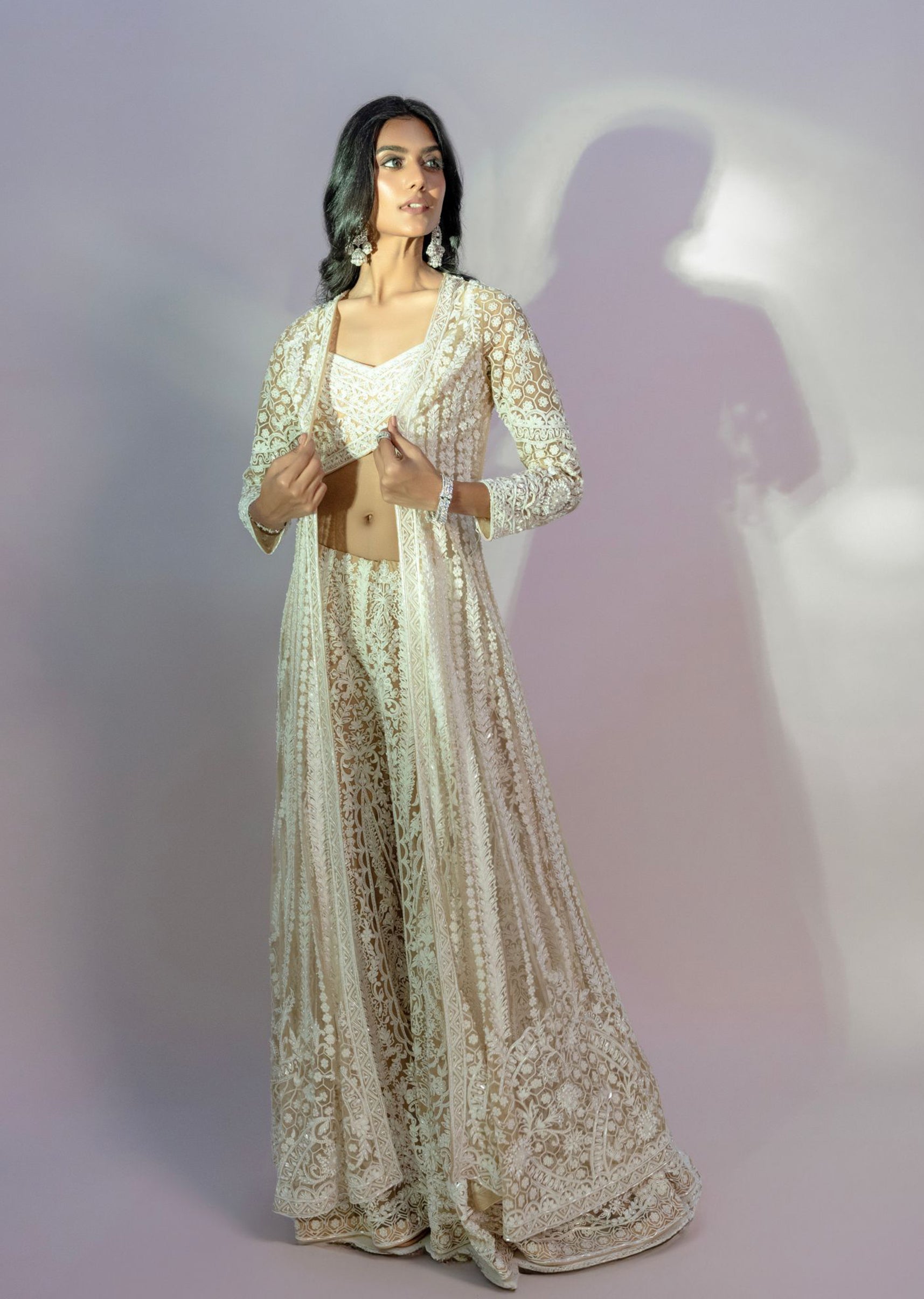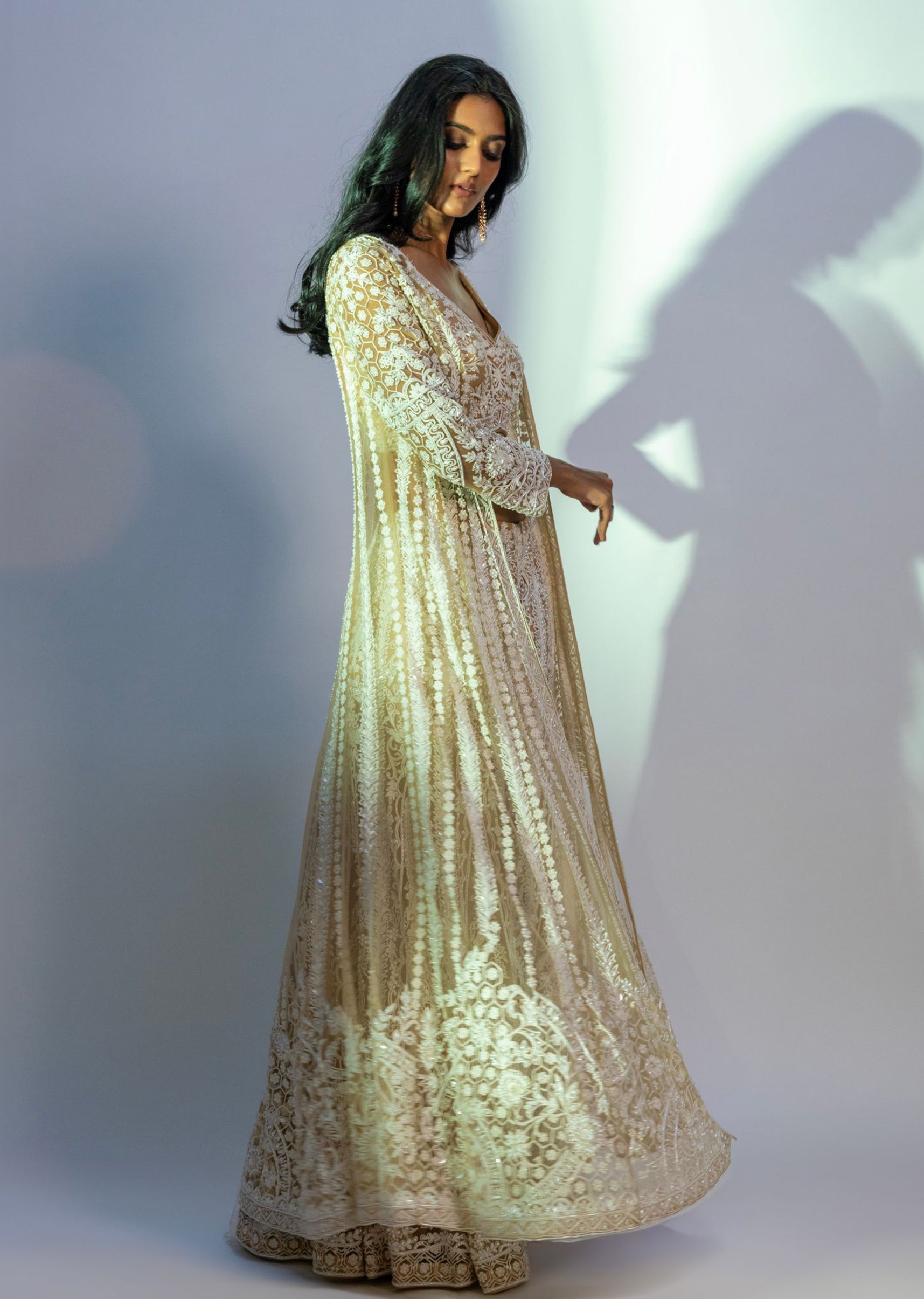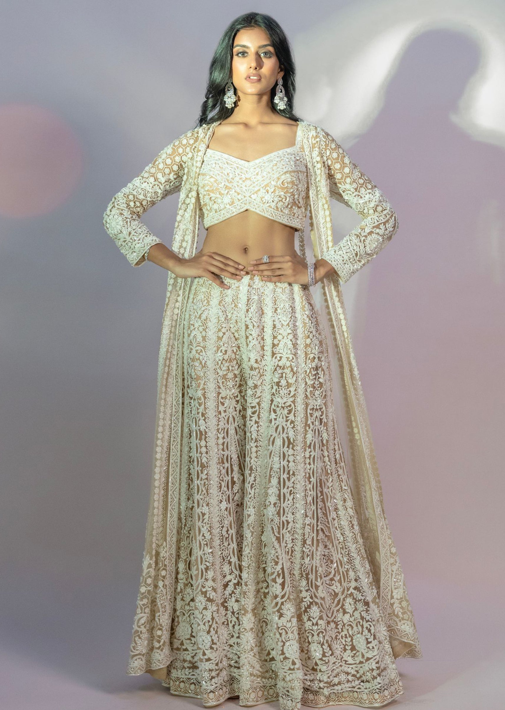 Gold Net Dori And Pearl Work Jaket Choli With Plazho Set